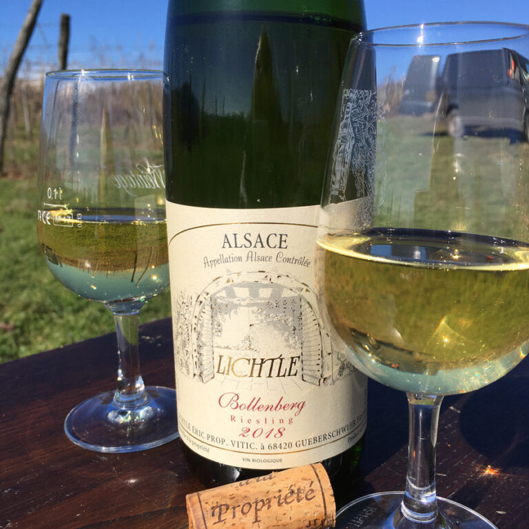 Grown at the top of Bollenberg, a hill 5 km south of Gueberschwihr. It’s unique micro-climat and dry soils make it a difficult environment to grow the Riesling grape. This struggle to grow brings a minerality and fine aromas to this wine.